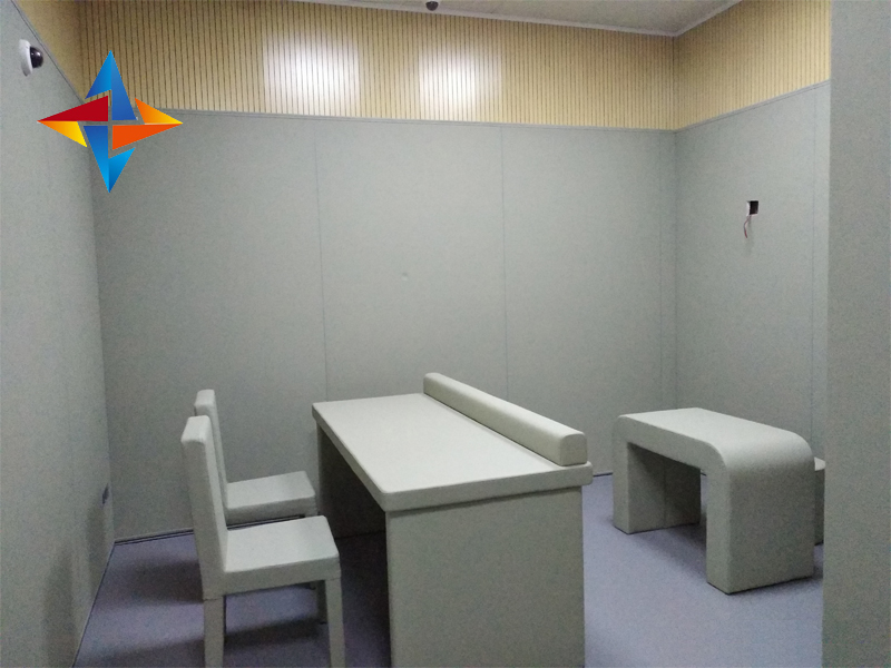 4.工程安裝創(chuàng)新:利用新型軟質(zhì)地腳線,軟質(zhì)門邊線,軟質(zhì)修邊條,卡座等配合審訊室防撞軟包的安裝。