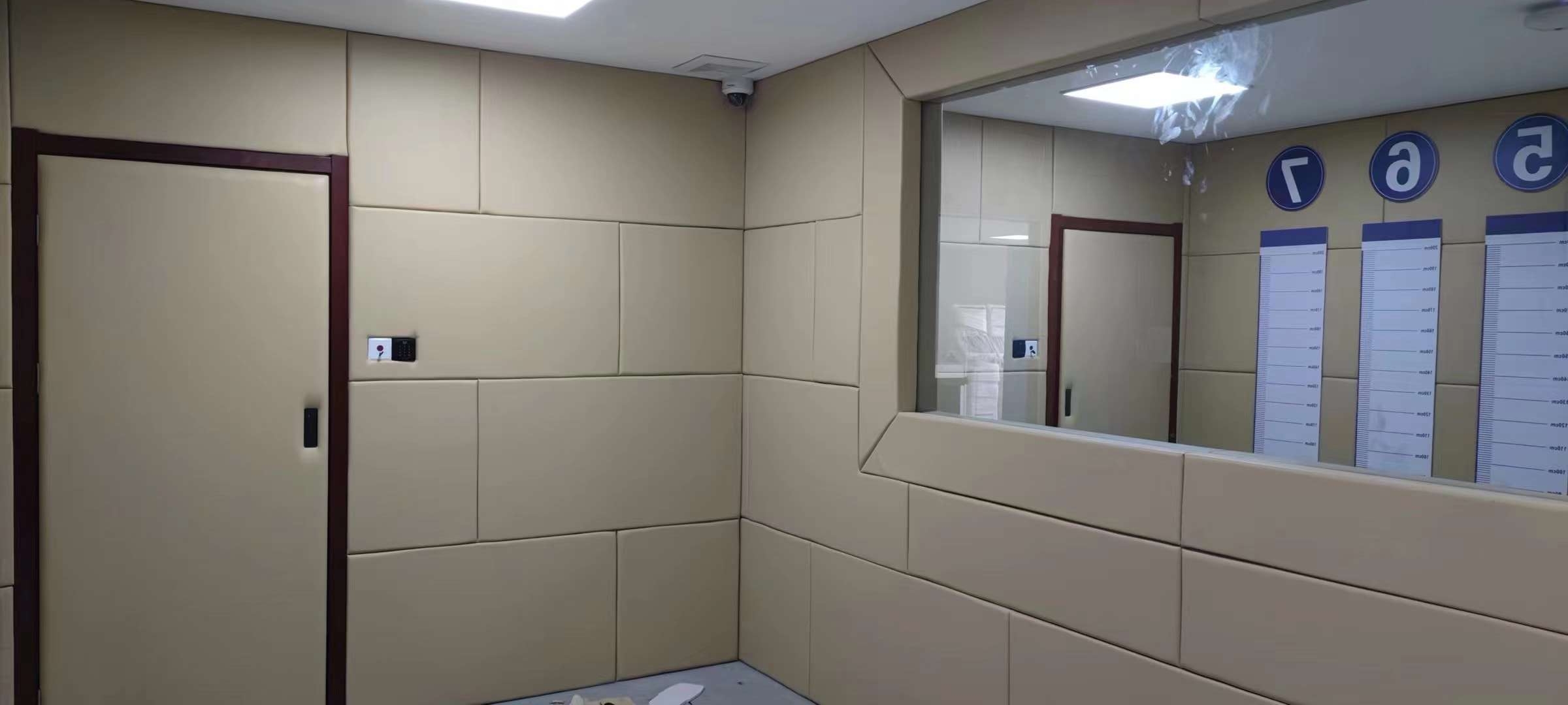 3.施工后,查看軟包墻板邊緣是否有縫隙,如縫隙較大可補膠處理,留置室四周陰陽角施工在軟包背面基材開直角槽,小木條加F30射釘固定墻板,待拆下無脫落現(xiàn)象即可用硅膠中線條封邊。